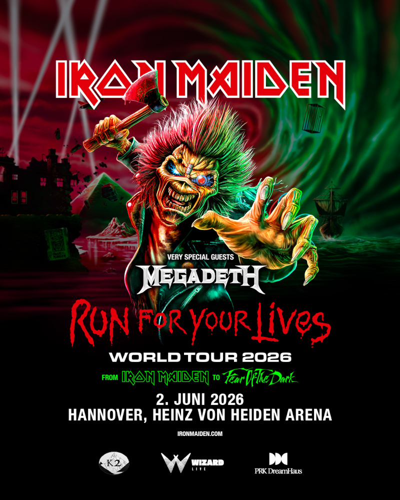 Iron Maidens Arenashow in Hannover ist Teil der nächsten Etappe ihrer dieses Jahr gestarteten Run For Your Lives World Tour, mit der die Band aktuell ihr 50-jähriges Bandjubiläum zelebriert und die schon jetzt als ihre bisher spektakulärste Konzertreise gilt. 2026 wird die Band zudem bei zahlreichen Sommerfestivals auftreten, darunter Rock Am Ring und Rock Im Park.
