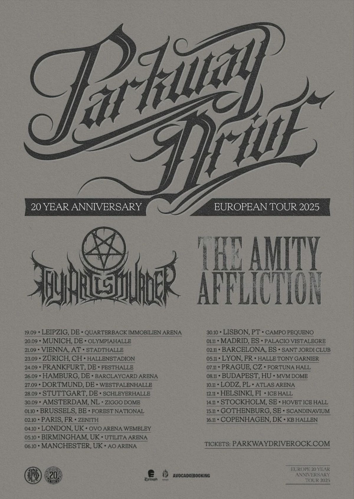 Frontmann Winston McCall sagt: "Das Jahr 2025 ist da, und der Countdown hat begonnen! Für alle, die es verpasst haben: Wir haben das letzte Jahr mit der besten Tournee abgeschlossen, die Parkway je gemacht hat. Eine karrierebestimmende Tour, auf die wir gefühlte 20 Jahre hingearbeitet haben. Diejenigen, die dabei waren, wissen, was ich meine. Diejenigen, die nicht dabei waren, haben bald die Chance, es selbst zu erleben. Wir bringen das Ganze nach Europa und Großbritannien, um diese Momente auch mit Euch zu teilen. Werft einen Blick auf den Teaser, sichert euch rechtzeitig ein Ticket und macht euch bereit."