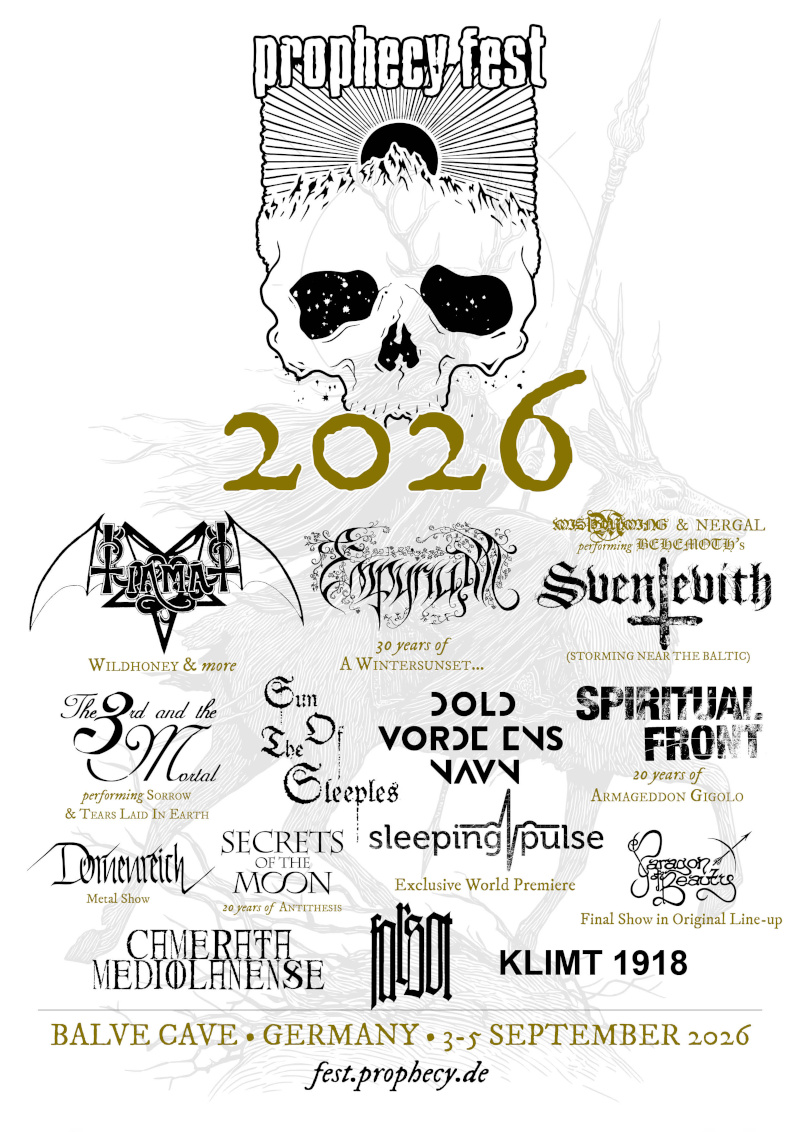 „Wir freuen uns riesig, Nergal und Misþyrming nächstes Jahr beim Prophecy Fest und in der Balve Cave begrüßen zu dürfen“, schwärmt der Festivalgründer Martin Koller. „Dieses Konzert schließt für mich einen Kreis, denn vor 30 Jahren, 1996, organisierte ich das Open-Air-Festival Heidenburg mit dem ersten Behemoth-Konzert auf deutschem Boden. Wir fühlen uns daher sehr geehrt, dass wir mit Misþyrming im Jahr 2026 ‚Sventevith (Storming Near the Baltic)‘, einen Meilenstein des polnischen Metal, in voller Länge auf unserem Festival präsentieren dürfen!“