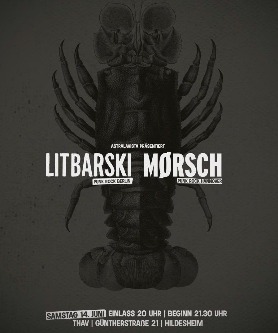 Am Samstag den 14.6.25 entern im Rahmen der Astra La Vista Reihe die Punkrocker von LITBARSKI die Bühne des Thav. Beim Hören der selbstbetitelten EP wird deutlich, dass die Jungs wohl auch Platten von Leatherface in der heimischen Sammlung haben. Die sind ja mal eine Hausnummer. Den Support übernehmen die Hannoveraner MORSCH, deren Sound weit weg von verwitterndem Holz ist. Anpfiff ist um 21:30 – es muss ja nicht immer Metal sein.