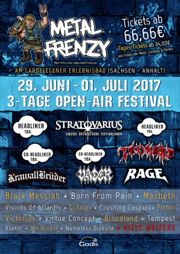Home News STRATOVARIUS als erster Headliner des Metal Frenzy Open Air bestätigt! von Kersten Lison • 01. Dezember 2016 • STRATOVARIUS als erster Headliner des Metal Frenzy Open Air bestätigt!