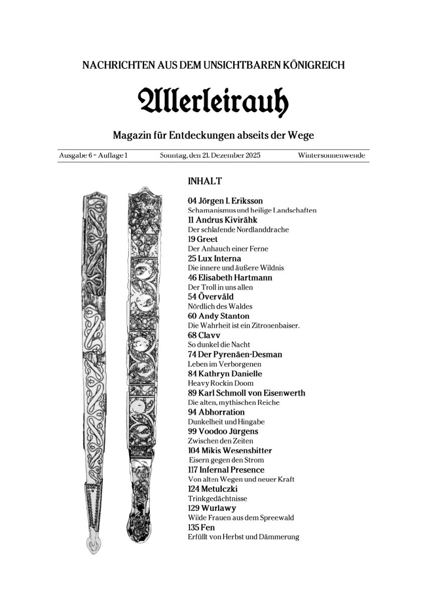 Wie der Fanzine-Bruder im Geiste vom Mørkeskye-Magazin, hatte auch Andreas Walther mit dem neuesten Streich seines Allerleirauh-Zines kurz vor den Feiertagen und Rauhnächten etwas Verspätung, weshalb ich dieses Mal erst Anfang Februar dazu komme, die sechste Ausgabe dieser eigenwilligen wie einzigartigen Gazette zu würdigen.