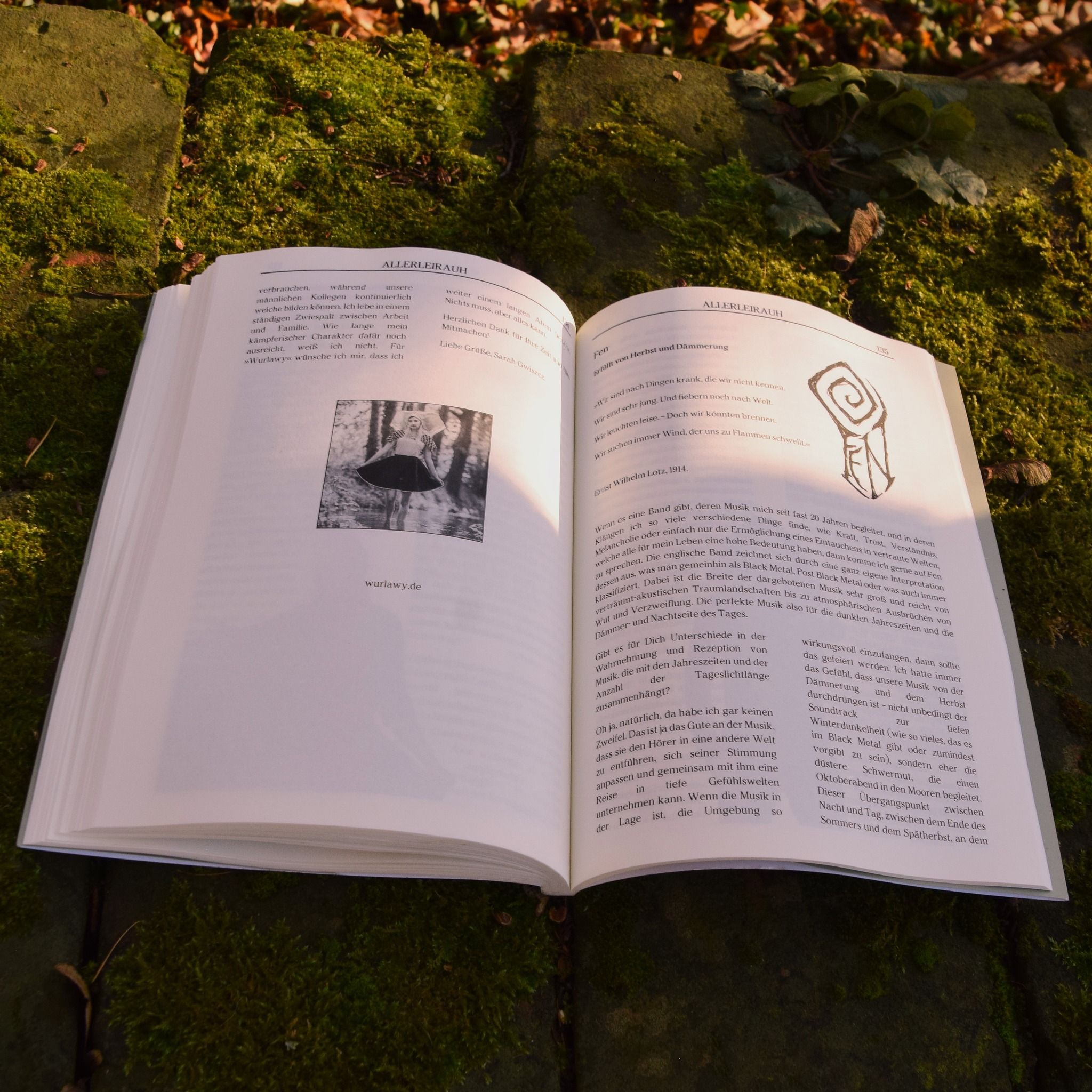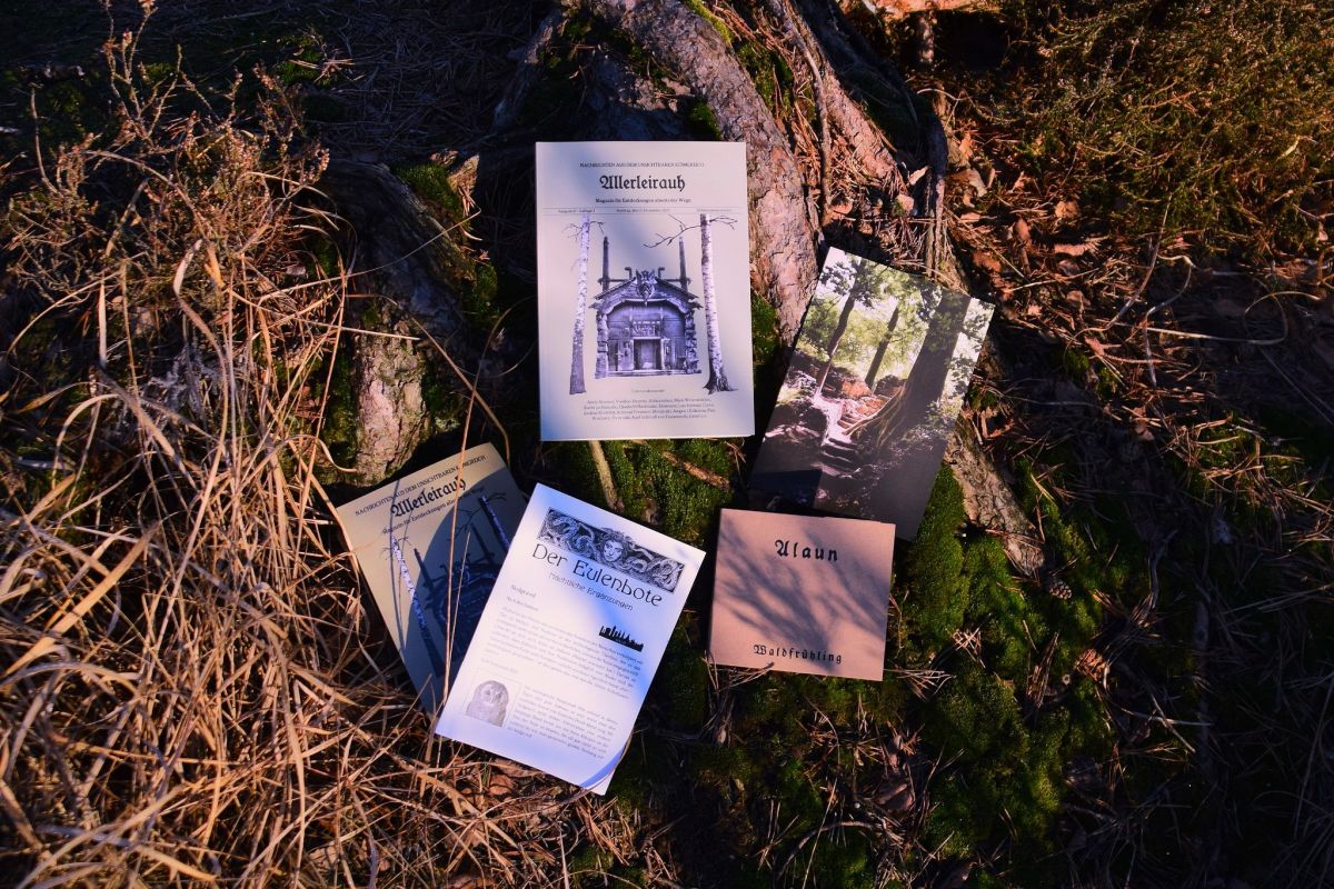 All jene, die dieses außergewöhnliche Fanzine, welches wie immer im A5-Buchformat erscheint und heuer mehr als 150 Seiten umfasst, bereits kennen, wissen grob, was sie erwartet und dürften kaum enttäuscht werden. Nicht nur das Frontcover ist dieses mal „harzaffin“, dem Heft liegt auch noch ein Fotodruck im Format 15x21 cm aus den Gefilden des nördlichsten deutschen Mittelgebirges bei. Und als wäre das nicht genug, nährt die CD von Alaun die Sehnsucht nach dem „Waldfrühling“, denn Marko Mäx Neumester liest hier (veredelt von keinem geringeren als Patrick W. Engel – Anm. d. Verf.) Naturschilderungen von Hermann Löns.