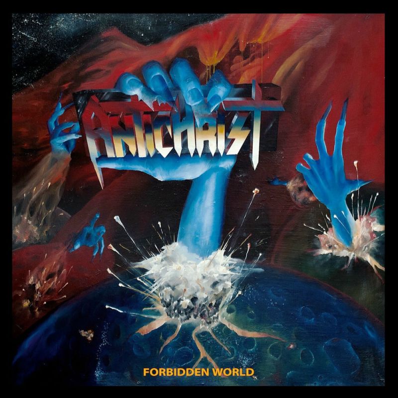 Mit den Totschlägern teilen sie zumindest das Genre. ANTICHRIST haben sich dem Thrash Metal der alten Schule verschrieben. Sänger Anton Sunesson klingt rau und hat ordentlich Hall auf den Vocals, ab und zu gibt es auch einige typisch "schmierige" Screams. Die Gitarren erinnern mich zum Teil an Whiplash zu ´Ticket To Mayhem´ Zeiten. Das sind ja mal Referenzen. ´Forbidden World´ startet furios, die Band feuert einem drei Thrash Granaten in die Hörgänge ehe bei dem Titeltrack, der eher ein Intro ist, der Fuß vom Gas genommen wird. Das folgende ´Necropolis´ ist dann mit über acht Minuten zu lang geraten, geht aber noch OK. Das kann man von dem zweiten Versuch, ein Epos zu verfassen, leider nicht sagen. ´Sign Of the Beast´ bringt es als Instrumental ebenfalls auf über acht Minuten Spielzeit. Da hätte die Hälfte locker gereicht. Ab der Mitte des Songs fängt die Leadgitarre an zu nerven und ich muss mich bemühen, den Finger von der Skip Taste fern zu halten. Bei den abschließenden Songs fängt sich die Band dann aber wieder und zockt zwei weitere Thrash Songs in Reinkultur. Hätten ANTICHRIST die Finger von den überlangen Songs gelassen, könnte ich jedem Thrash Puristen diese Platte uneingeschränkt ans Herz legen, so gibt es gewisse Abstriche.