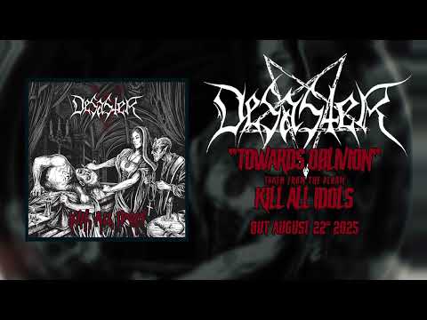 “Kill All Idols” fällt insgesamt an vielen Stellen sehr viel weniger episch als direkt aus. In Sachen Songwriting wirkt das Album entschlackt. Exemplarisch steht dafür ein Song wie “They Are The Law”, der eine perfekte Mischung aus Motörhead, Impaled Nazarene und Straßenpunk ist. “Kill The Idol” schlägt in die gleiche Kerbe wobei dieser deutlich metallischer daher kommt. Der grimmige Schwarzmetall-Sturm des Openers “Great Repulsive Force” mag diesbezüglich etwas in die Irre führen, bevor der treibende Uptempo-Banger “Emanation Of The Profane” Desaster pur zelebriert – Heavy Metal, Thrash Metal, Black Metal inklusive der typischen Melodien und Epik! Das steigert sich mit dem bereits vorab veröffentlichten “Towards Oblivion” noch einmal ins nahezu Unermessliche - vom begnadeten Lead-Gitarren-Intro Infernals angefangen bis zur letzen Note: Desaster zum Niederknien! Hier geht nicht nur der Punk ab, dieser Song wird live nur verbrannte Erde hinterlassen! “Ash Cloud Ritual” ist sowohl bei den Hochgeschwindigkeits-Passagen, wie auch in den schleppend-doomigen Passagen in jeder Hinsicht brutal und grobschlächtig, bevor die epische Seite von Desaster bei “Fathomless Victory” vollends zum Tragen kommt. Darf man das schon Ballade nennen? “Throne Of Extasy” ist dann wieder so ein Song, ein Punk Rock meets Back Metal – Desaster. “Stellar Remnant” fängt unbequem, wuchtig und brachial an, bevor er dann zwar Fahrt aufnimmt, bis das Tempo wieder extremst verschleppt wird. Ja, auch die Sache mit den Spannungsbögen können Desaster noch. “Idols End” ist wiederum eines dieser typischen Desaster-Instrumentals, welches von Infernal Kuschkes unverkennbarem und einzigartig “singendem” Gitarren-Riffing und seinen Leads getragen wird, die diese unnachahmlichen Mittelalter-Vibes versprühen.