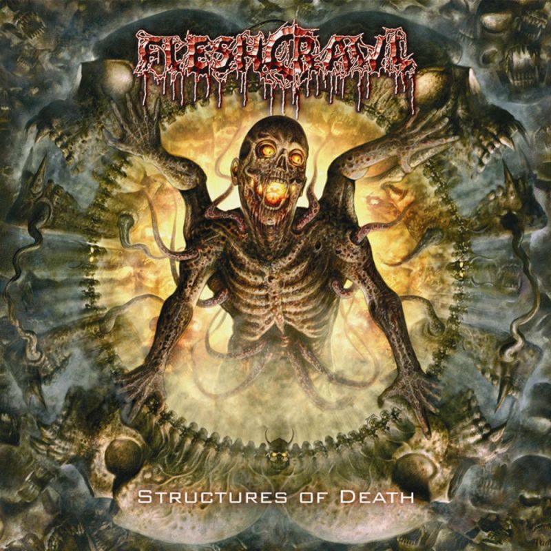 Musikalisch ist man seinen Wurzeln ziemlich treu geblieben und so liefert man auch mit „Structures Of Death“ einen sehr ähnlichen Sound ab. Orientieren tut man sich allerdings nunmehr an alten „Dismember“, was ja auch nicht das Schlechteste ist. So absolviert man heuer einmal wieder primär Tempomärsche an den Instrumenten, aber auch kongeniale Breaks und das gelegentliche Auftauchen einer Akustik-Klampfe lockern die häufig auftretenden Blast Beat Anfälle der Jungs auf. Schwedischer wie hier klangen deutsche Death Metal Bands selten. Summa Summarum liefern die fünf Mannen von „Fleshcrawl“ mal wieder eingängigen, stereotypen und technisch versierten Hartwurst Metal ab, der dazu noch in eine mörderische Breitwandproduktion eingebettet wurde. Qualitativ gibt es sicherlich nichts zu beanstanden, dennoch wiederholt man sich auf diesem Album zum x-ten Mal. Richtige Granaten im Stile der Songs von oben genanntem Album sind dazu leider noch fehl am Platze, unterdurchschnittliches Material gibt es hingegen bei diesem Prügelmachwerk auch nicht auszumachen. Für hauptberufliche Deather kann ich ohne größere Bedenken eine Kaufempfehlung aussprechen, Nebenbeiknüpplern gebe ich hingegen den Rat, zumindest mal reinzustöbern und evt. das eine oder andere Ohr zu riskieren, denn "Fleshcrawl" sind dennoch mit das Beste, was unser Land in diesem Genre zu bieten hat.
