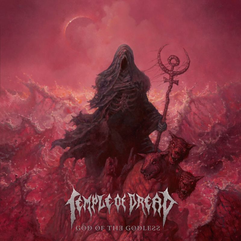 Gemeinsam mit SLAUGHTERDAY halten sie die ostfriesische Flag Of Death nun schon länger hoch und werfen mit ´God of the Godless´ ihr bereits fünftes Album auf den Markt. Mit dem saustarken dritten Album ´Hades Unleashed´ hatte das Trio ihren Old School Death Metal perfektioniert und so bauten sie auf ´Beyond Acheron´ einige neue Elemente in den Sound ein. Ehrlich gesagt gefiel mir, wie die leichten Flirts mit dem Black Metal, nicht alles an den Neuerungen. Kollege Zwingelberg hingegen sah das genau andersherum. So war ich gespannt, ob TEMPLE OF DREAD den eingeschlagenen Weg weitergehen. Die Antwort ist ja und nein. Schwarzmetallische Elemente sind wieder aus dem Sound verschwunden, gleichzeitig feilt das Trio immer weiter an seinem eigenen Sound.
